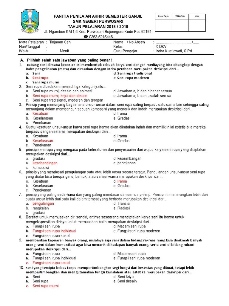 Soal Seni Kls X / Soal Uas Seni Budaya Kelas 10 Semester 1 Kurikulum 2013 Dan Jawabannya Teori Dan Soal / Some of the products that app.